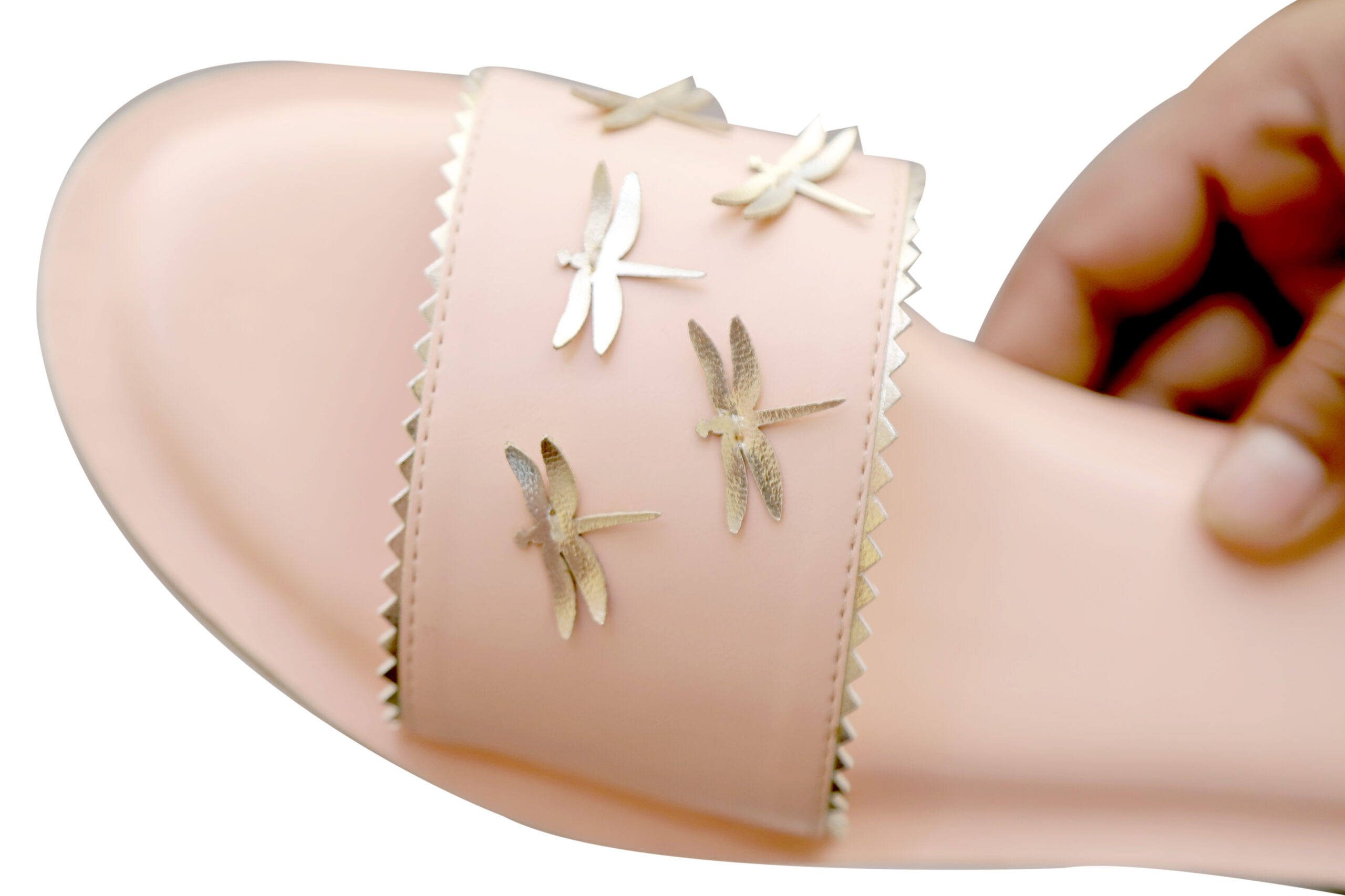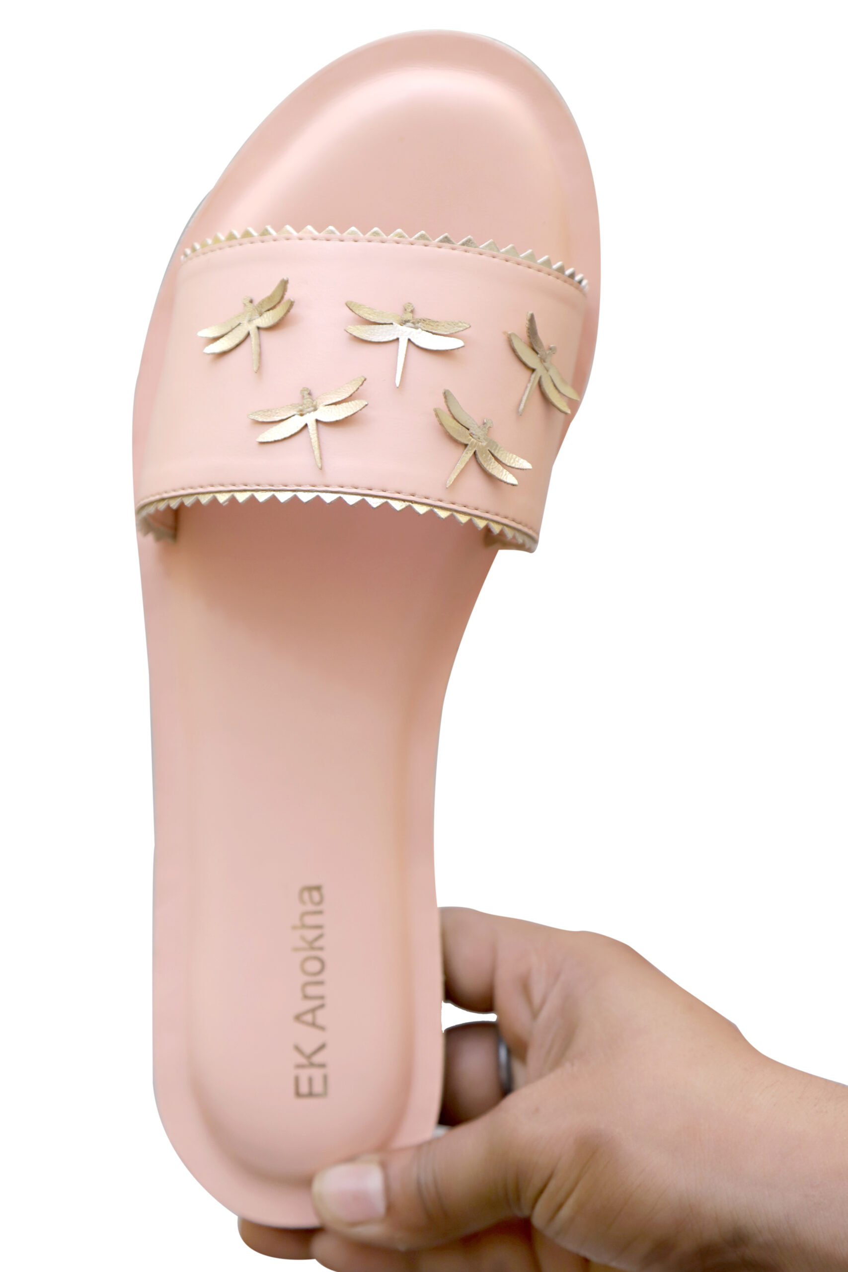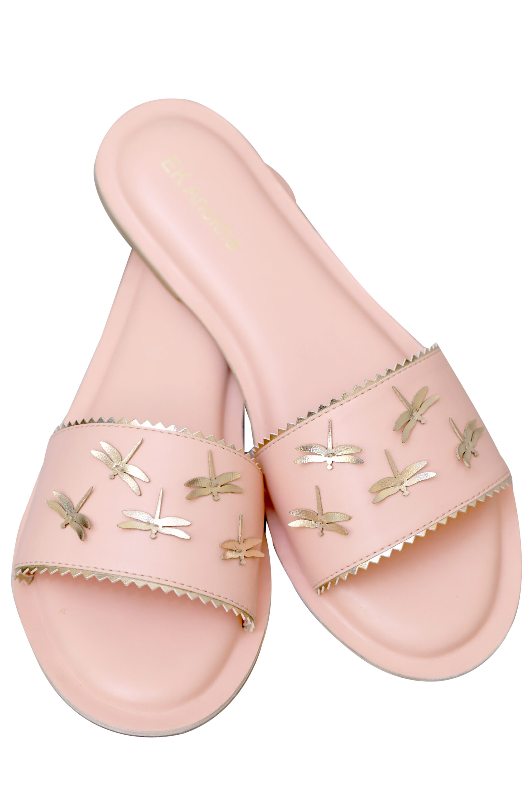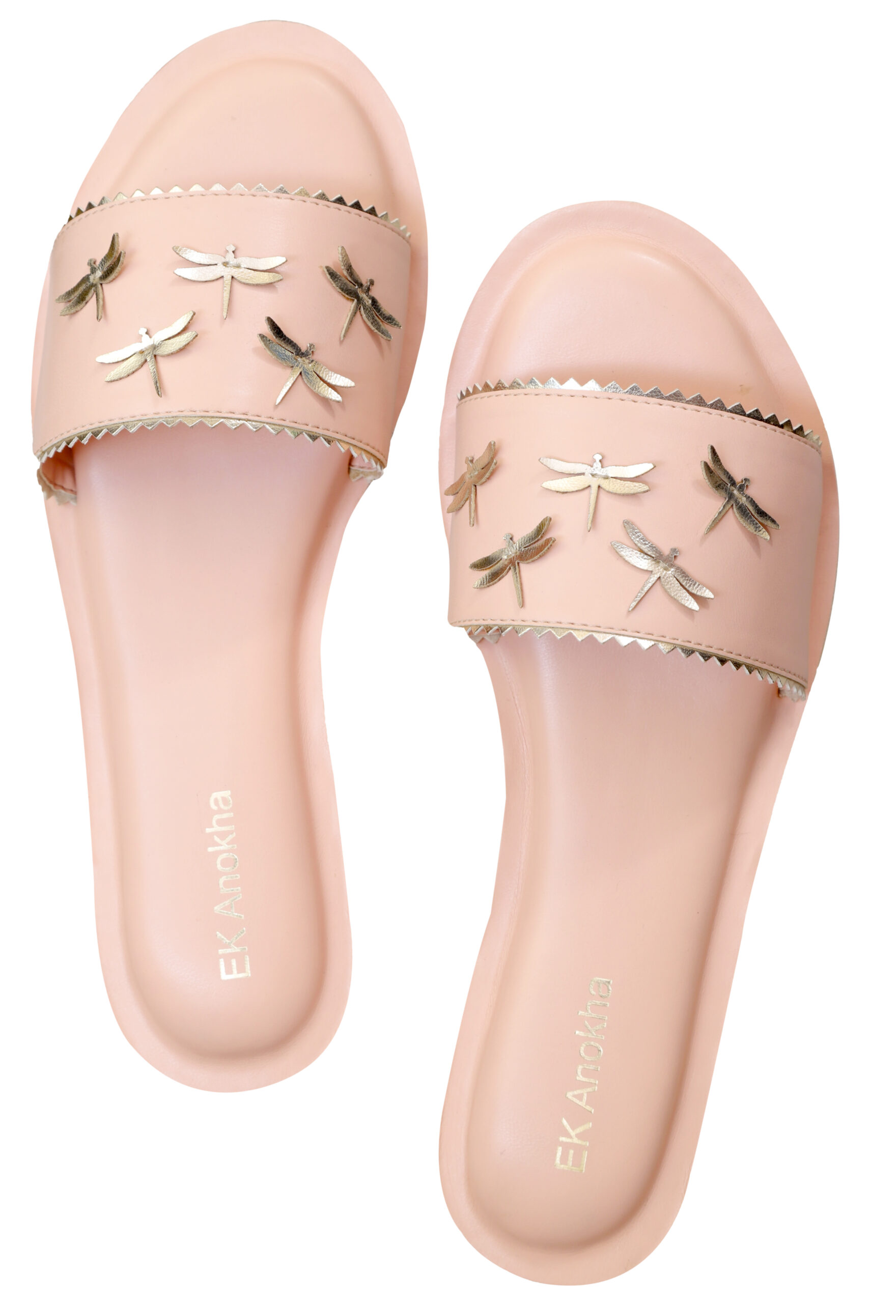 A cluster of our beloved dragonflies symbolizing freedom and growth! A handcrafted slider to give your feet the comfort it deserves.